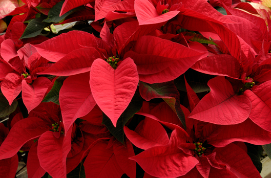 Limited on space? Bert's Red Apple has potted Cypress trees in 4” (quart-size), 6” and 8” sizes. Their scale lets you place multiple trees anywhere you like. For an added holiday display, place potted Poinsettias in the entryway or near a staircase for a surprise of holiday color. They come in pink, red, and white. There are sweet 3” ceramic pots, perfect for taking to the office or adding color to those small places. Poinsettias also come in larger 4” and 6” pots all done up in colorful, shiny foil, perfect for gifting.